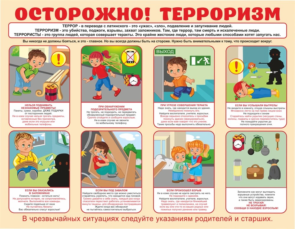 В детском саду прошла тематическая неделя по антитеррористической безопасности - С воспитанниками проведены минутки безопасности по темам - Что такое опасность? - Встреча с незнакомцем - Подозрительный предмет - В игровой форме педагоги объясняли, почему опасные предметы нельзя приносить в детский сад и играть с ними дома, почему нельзя трогать неизвестный пакет, игрушку или коробку, обнаруженные на улице или на территории детского сада - Дети участвовали в интерактивных играх и практических занятиях игрового характера - В группах организованы выставки рисунков детей с родителями «Мы за мир!» - Педагогами оформили букет для родителей с консультациями и памятками «Внимание! Терроризм!» - С сотрудниками ДОУ проведена тренировка по антитеррористической безопасности «Действия персонала при обнаружении постороннего предмета» - Проведена консультация с педагогами «Обучение дошкольников мерам личной безопасности в сфере антитеррористической деятельности» Цель цикла мероприятий - Повышение уровня безопасности детей и сотрудников детского сада - Формирование умений и навыков правильного поведения в опасных ситуациях - Профилактика террористических угроз и информирование родителей и персонала Рекомендации для родителей и педагогов - Объяснять детям простыми словами правила безопасности и повторять их регулярно - Не оставлять без присмотра сумки и подозрительные предметы, немедленно сообщать персоналу или в полицию - Рассматривать тематические игры и рисунки как инструмент обучения и укрепления доверия между детьми и взрослыми